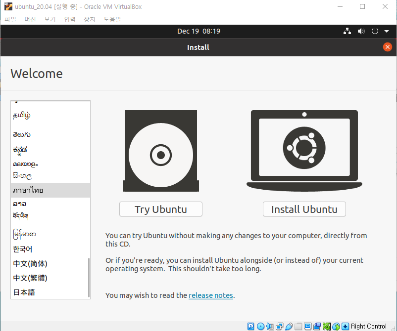 Install Ubuntu 눌러서 설치 진행해 주세요~~