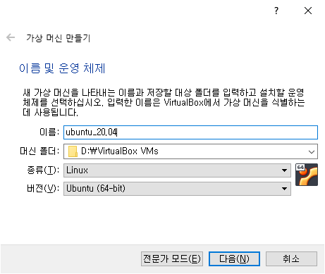 Virtualbox 실행시키면 "새로 만들기" 메뉴가 있습니다. 그러면 아래와 같이 설정해 주시면 되요(이름은 편하신대로…).