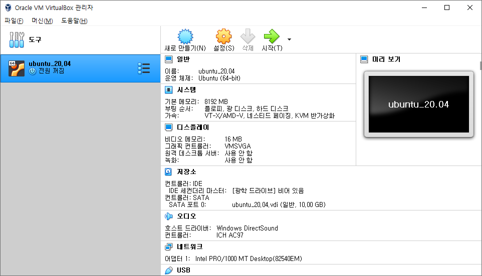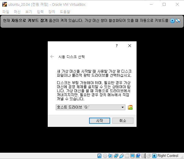 가상으로 쓸 하드디스크만 만들었다고 보시면 됩니다. 이제 ubuntu를 설치해 줘야 합니다.