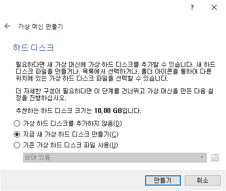 하드디스크도 설정하는데 잠시 맛만 볼 것이니까 기본 설정 그래도 할게요.