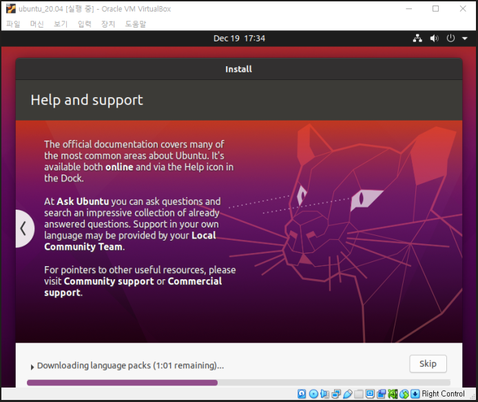 Download가 완료되면 다시 virtualbox로 돌아옵니다.