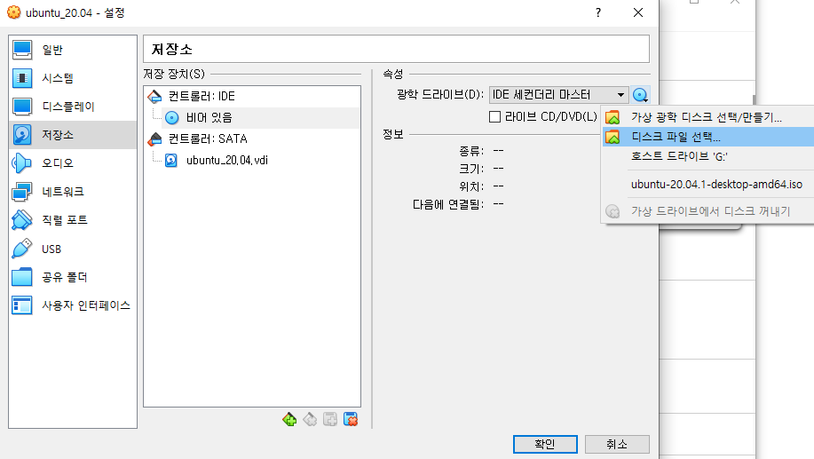 아까 다운로드 받은 ubuntu iso 파일을 선택해 줍니다.