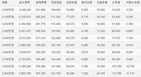 추가로 연봉 협상하러 들어가기 전에 연봉에 따른 실 수령액을 파악하고 들어가면 좋습니다.