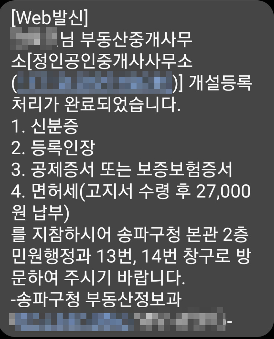 공인중개사 협회에서도 안내 문자가 왔습니다.