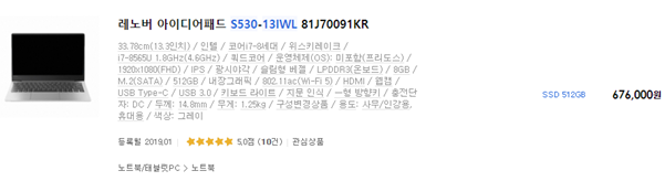 다나와에 써 있던 제품명은 “레노버 아이디어패드 S530-13IWL 81J70091KR” 입니다.