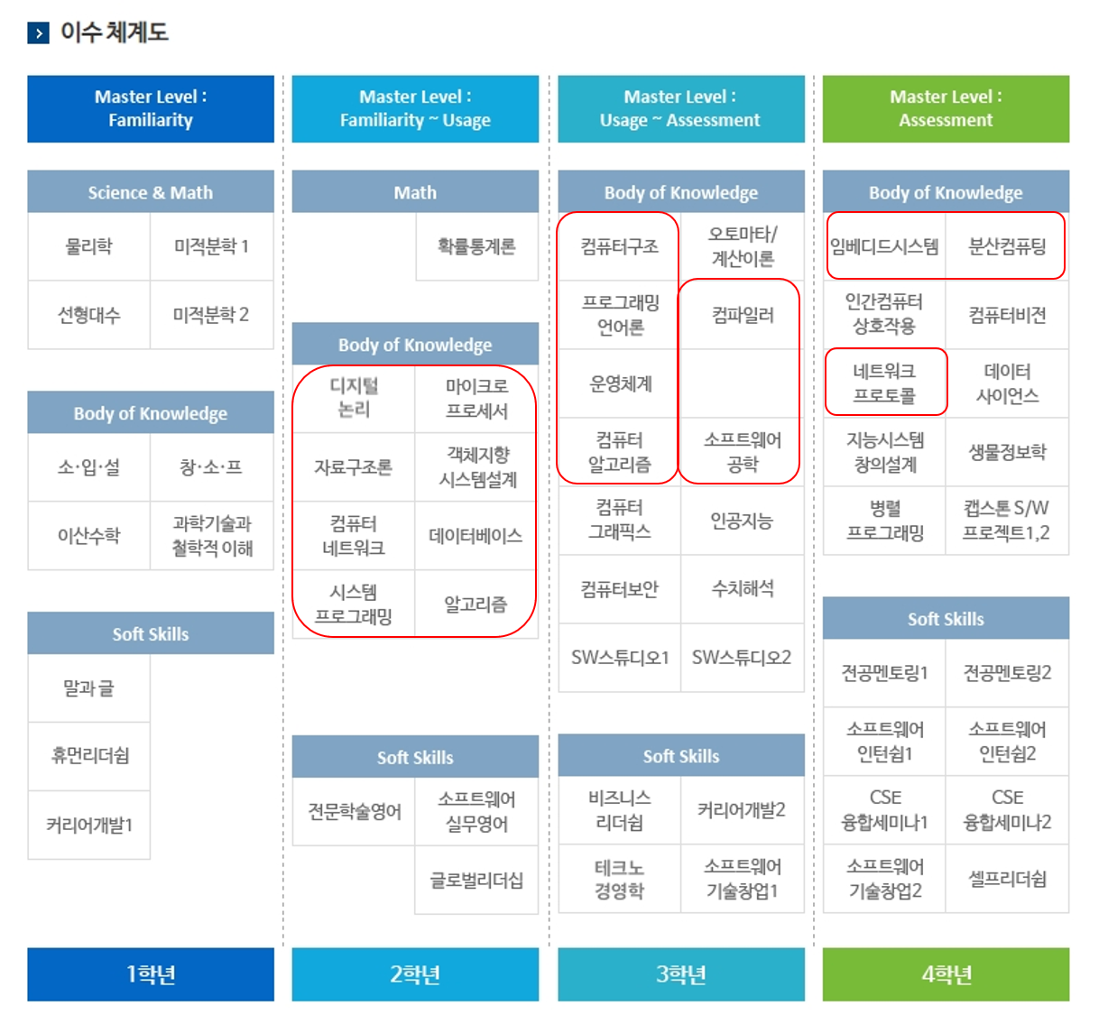아래의 그림은 한양대학교 소프트웨어대학 컴퓨터소프트웨어학부의 이수 체계도 입니다.