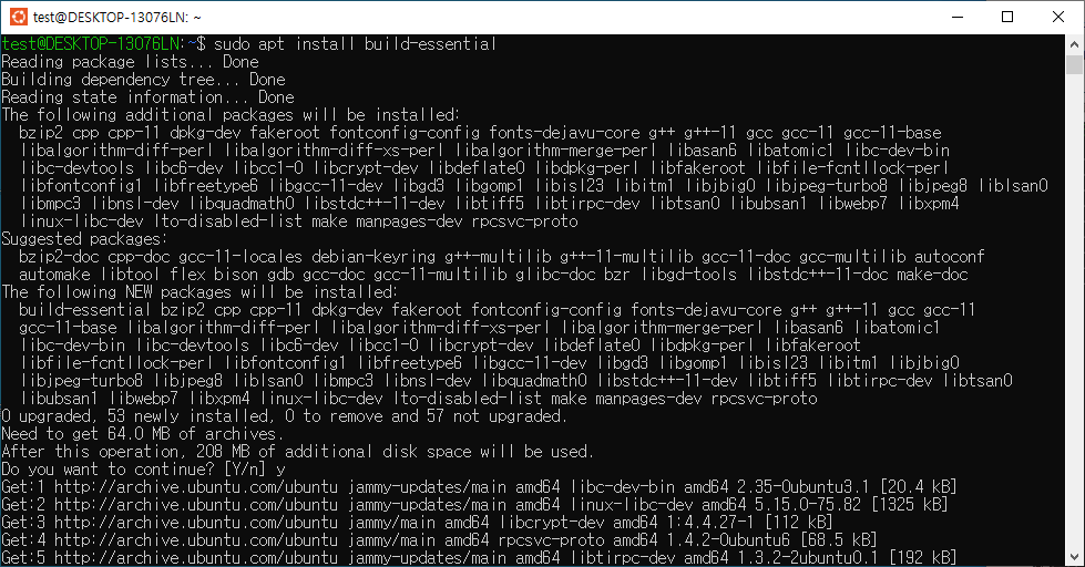 리눅스 환경에서 빌드하기 위한 패키지를 설치하는 것 입니다.