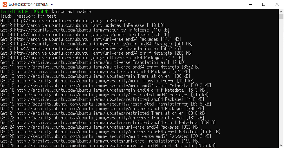 리눅스를 처음 설치하면 업데이트를 해줘야 하고 해당 명령은 아래와 같습니다.