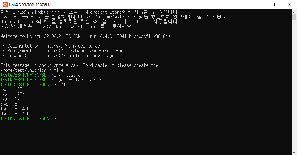 이렇게 하면 자료형과 변수 사용 준비가 끝났습니다.