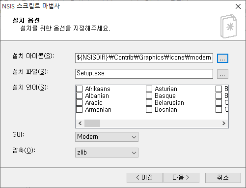 간단하게 하려면 설치 아이콘, 설치 파일명, 설치 언어만 건드리면 된다.