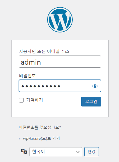 아이디에 admin이라고 입력하고 비밀번호는 닷홈 비밀번호를 입력한다.