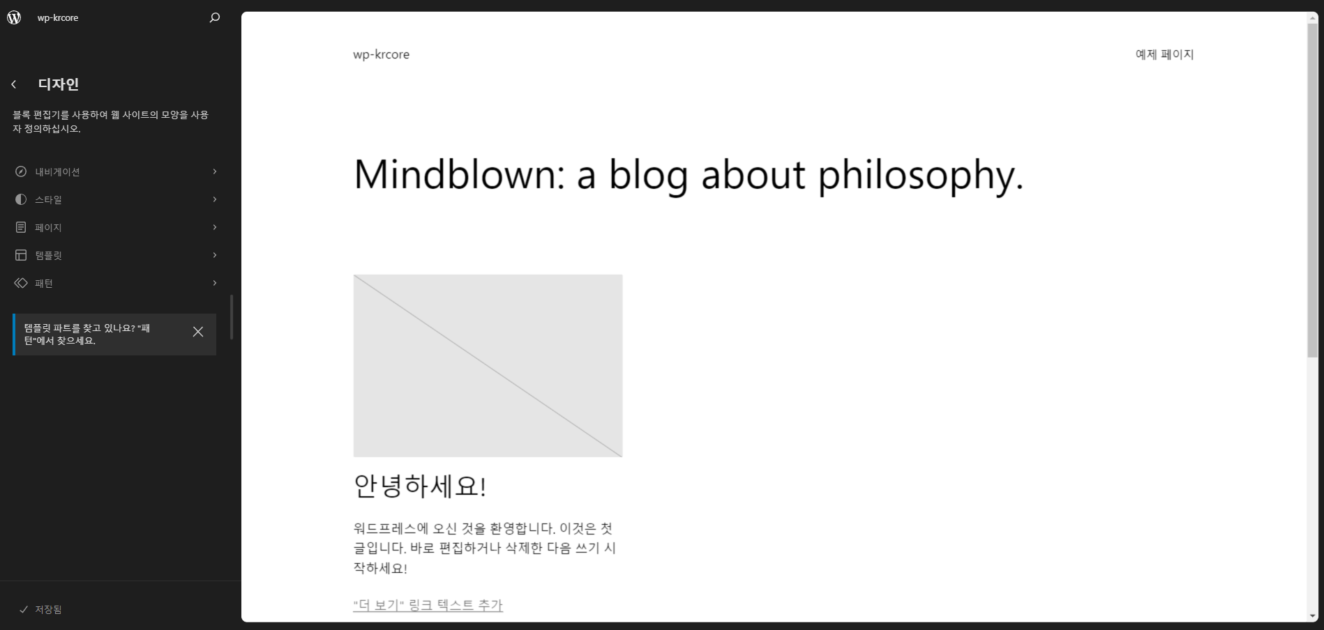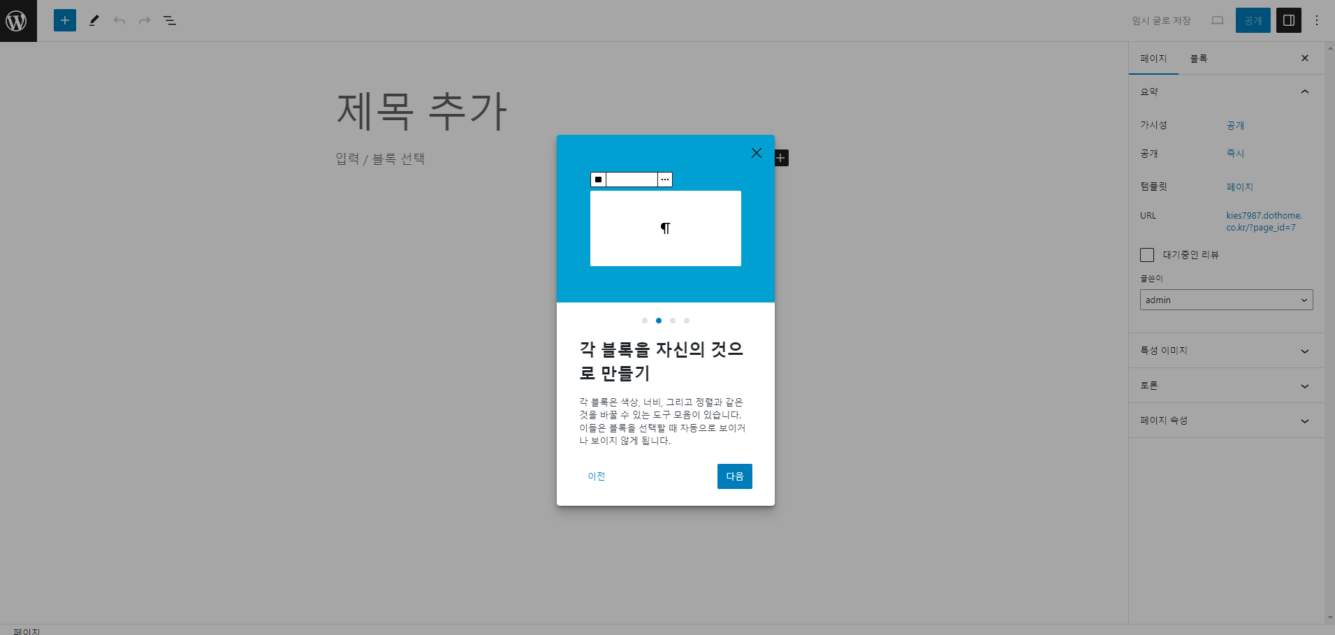 설정 페이지까지는 성공했으니 이제 본격적으로 사이트를 만들어볼 차례!