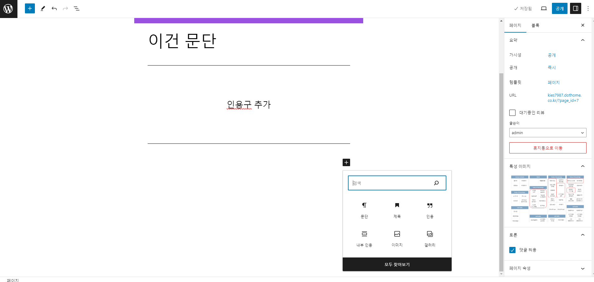 위 처럼 간단한 테스트만 해봤는데 wix, imweb 등 다른 CMS와 차이가 좀 있는 것 같다.