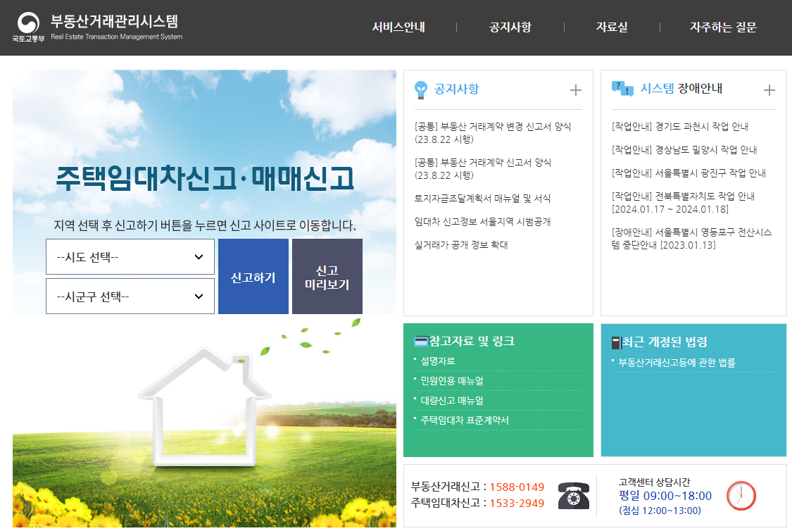 부동산거래신고 : 1588-0149 주택임대차신고 : 1533-2949