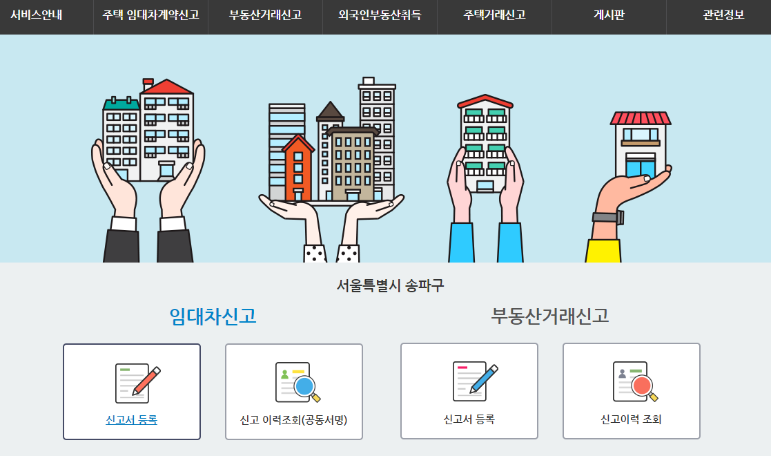 온라인의 발전으로 부동산 신고도 간편하게 할 수 있게 시스템이 만들어져 있습니다.