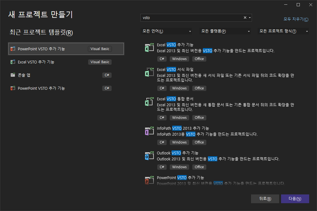 PowerPoint VSTO 추가 기능 - vba 선택(c#으로도 선택 가능)