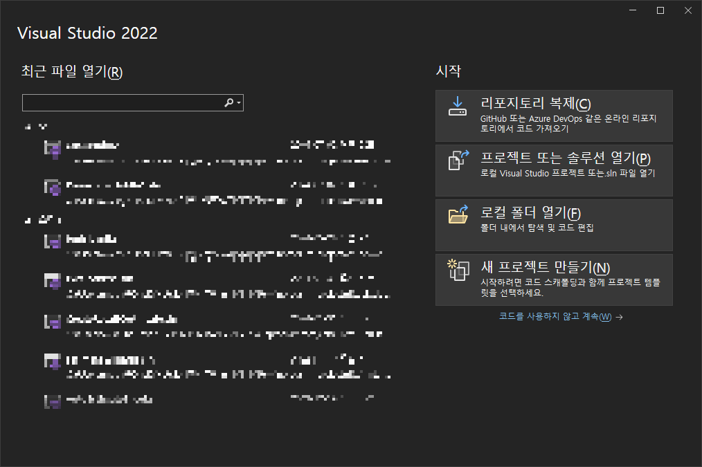 visual studio 2022 실행 > 새 프로젝트 만들기