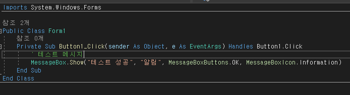 Form1.vb [디자인] 에 버튼 추가 후 더블클릭하여 이벤트 생성