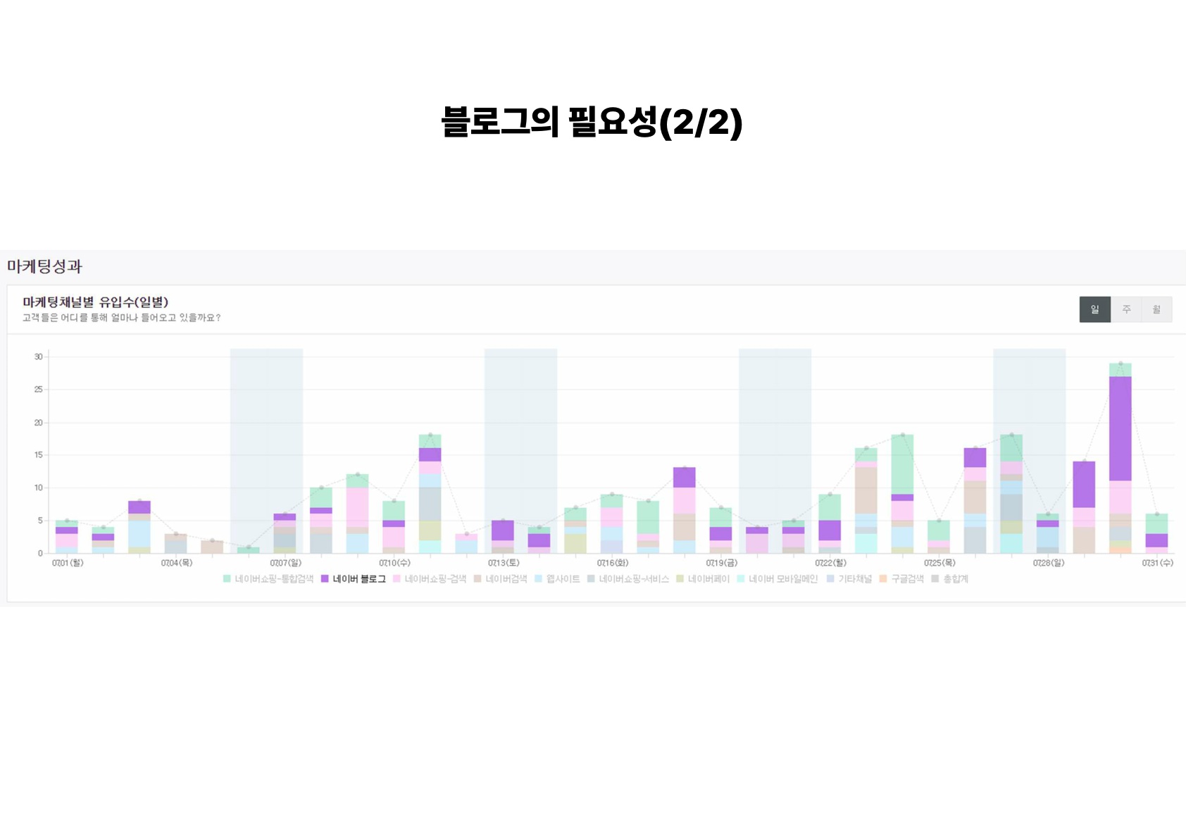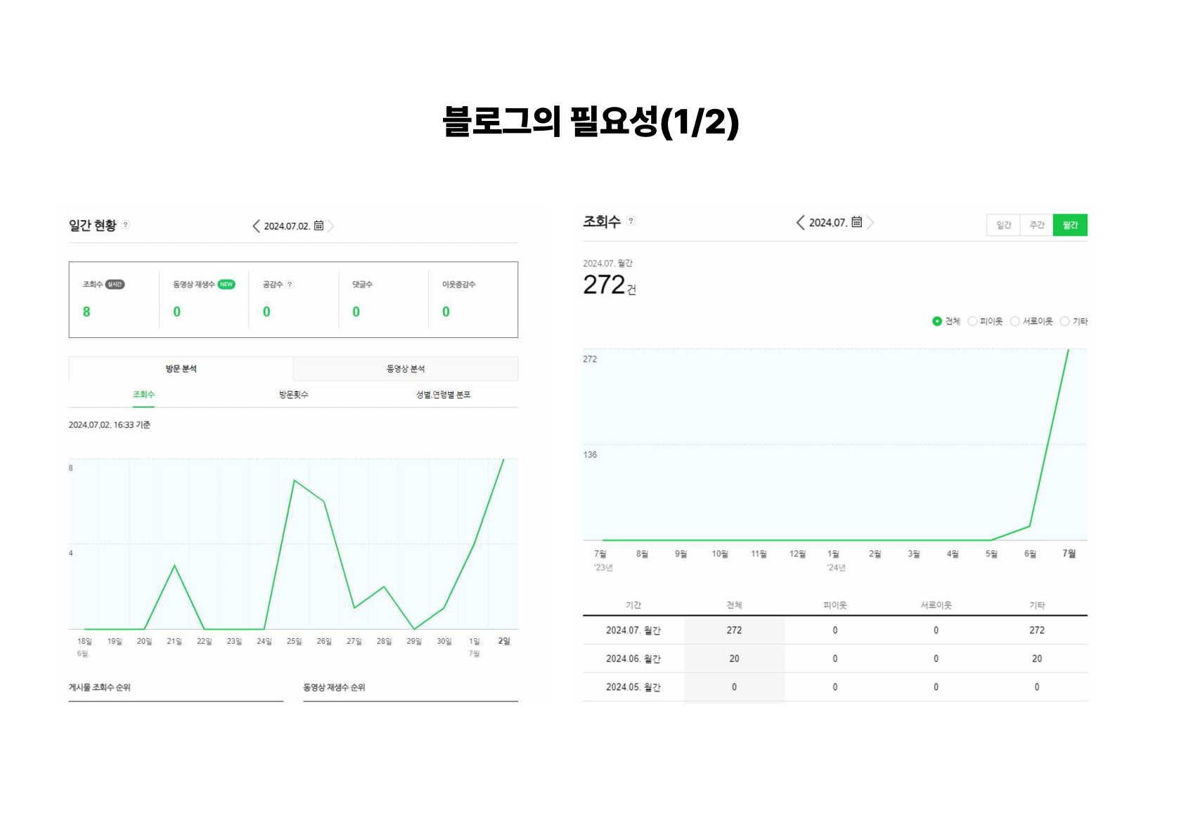 셋째주부터는 블로그나 스마트스토어의 통계에 데이터가 나오기 시작합니다.