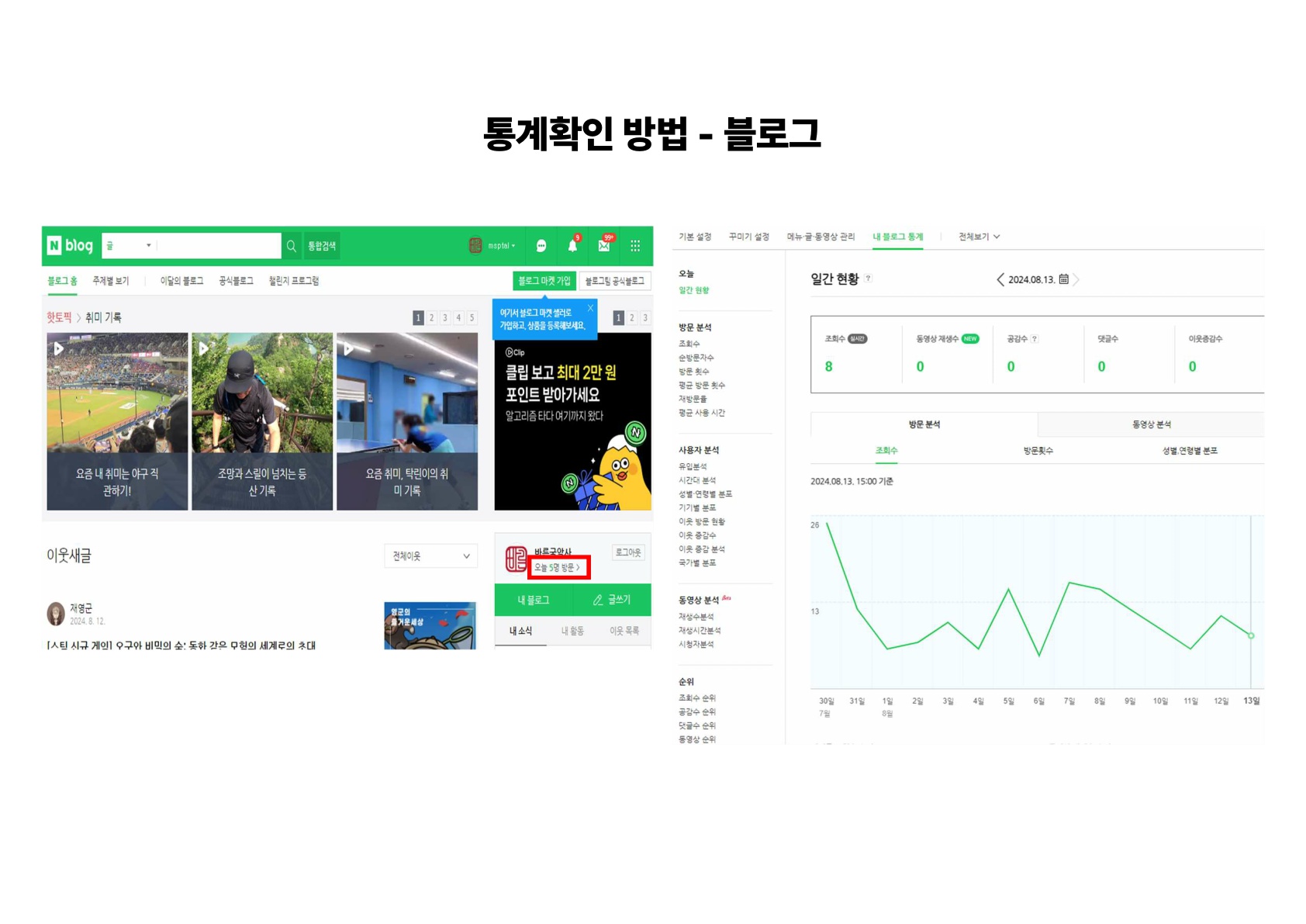 블로그와 스마트스토어에서 통계 확인하는 방법은 아래와 같습니다.
