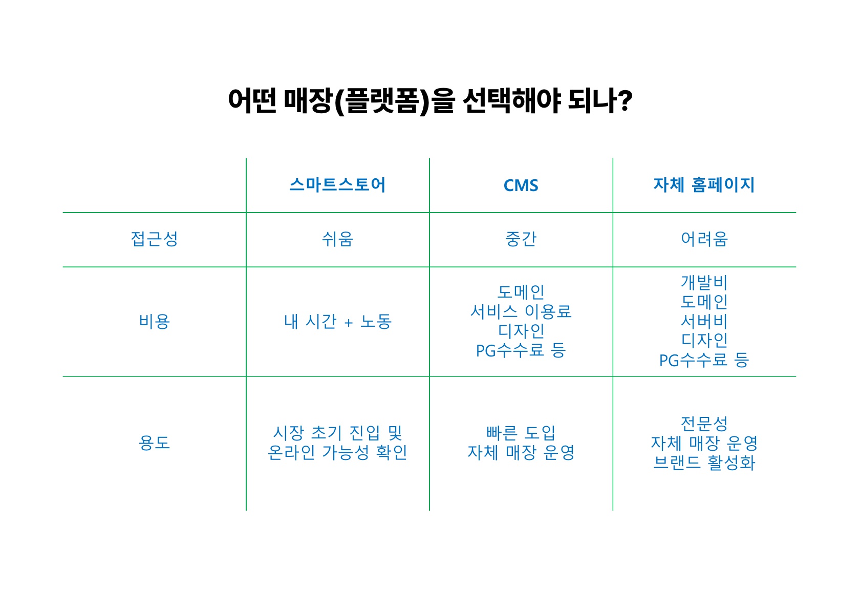 imweb, wix, cafe24 등이 대표적인 플랫폼 제공 업체입니다.