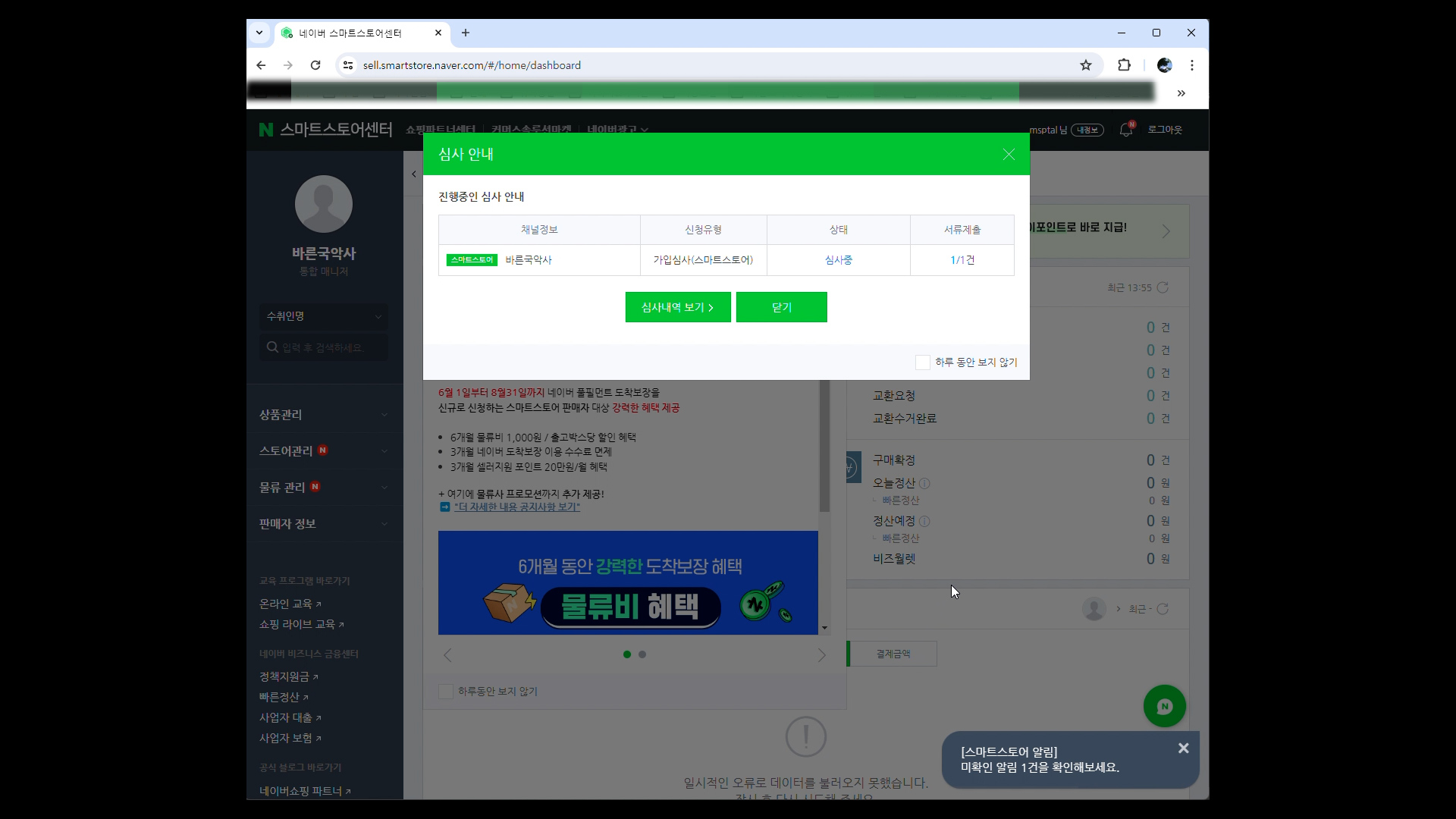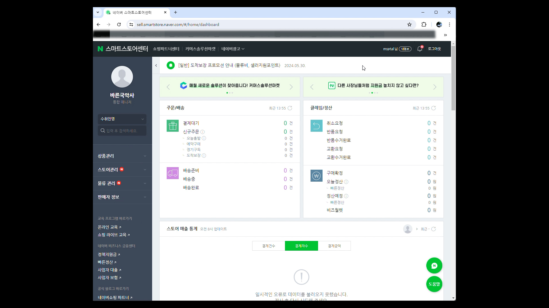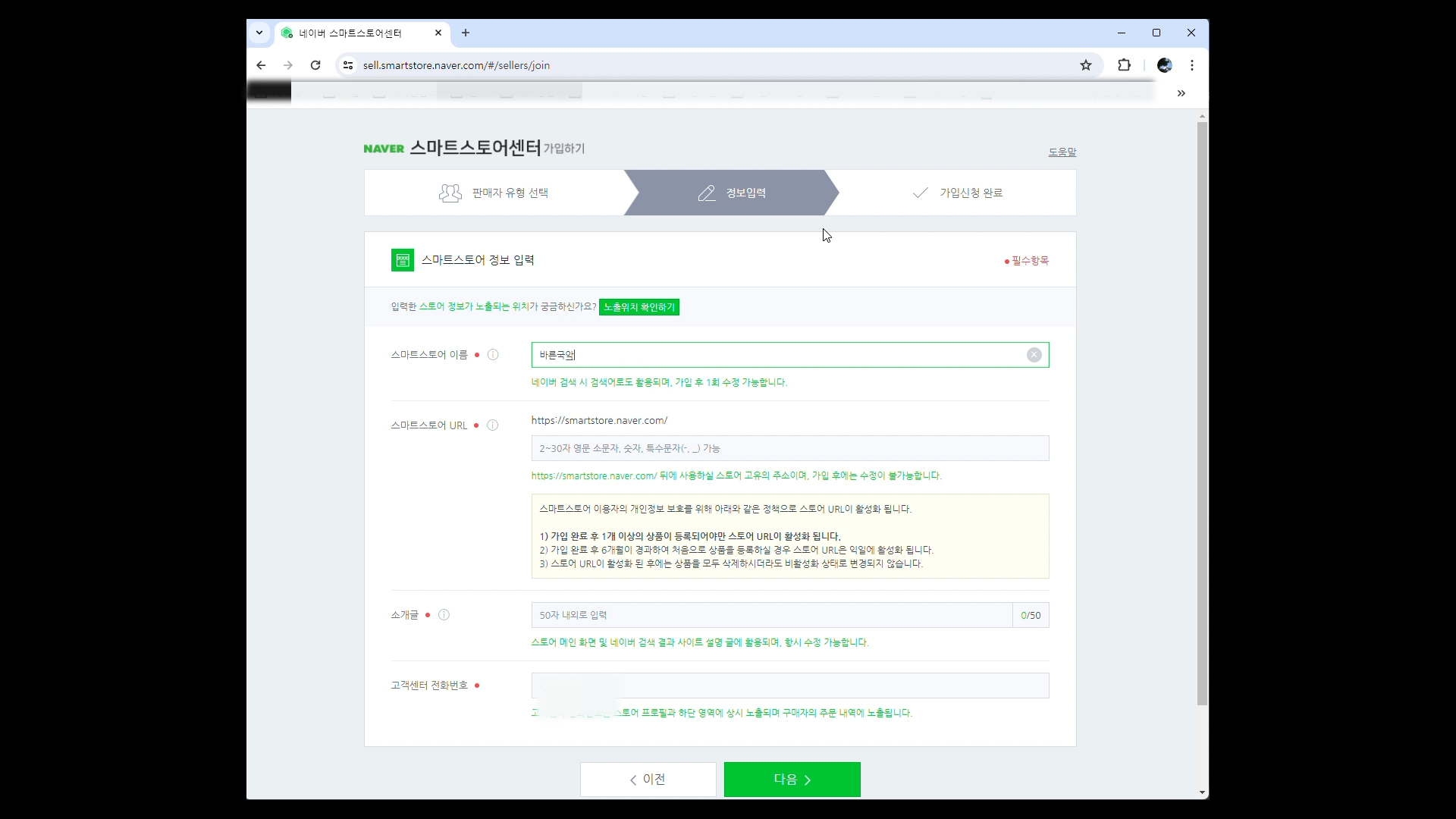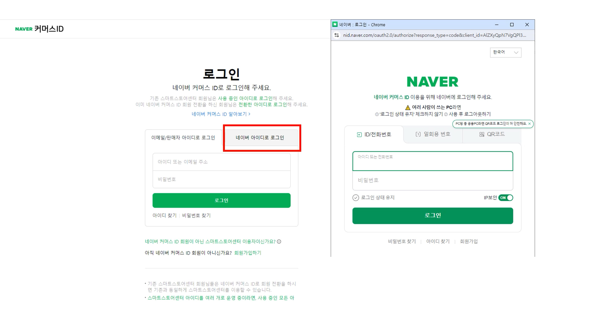 스마트스토어에 접속하여