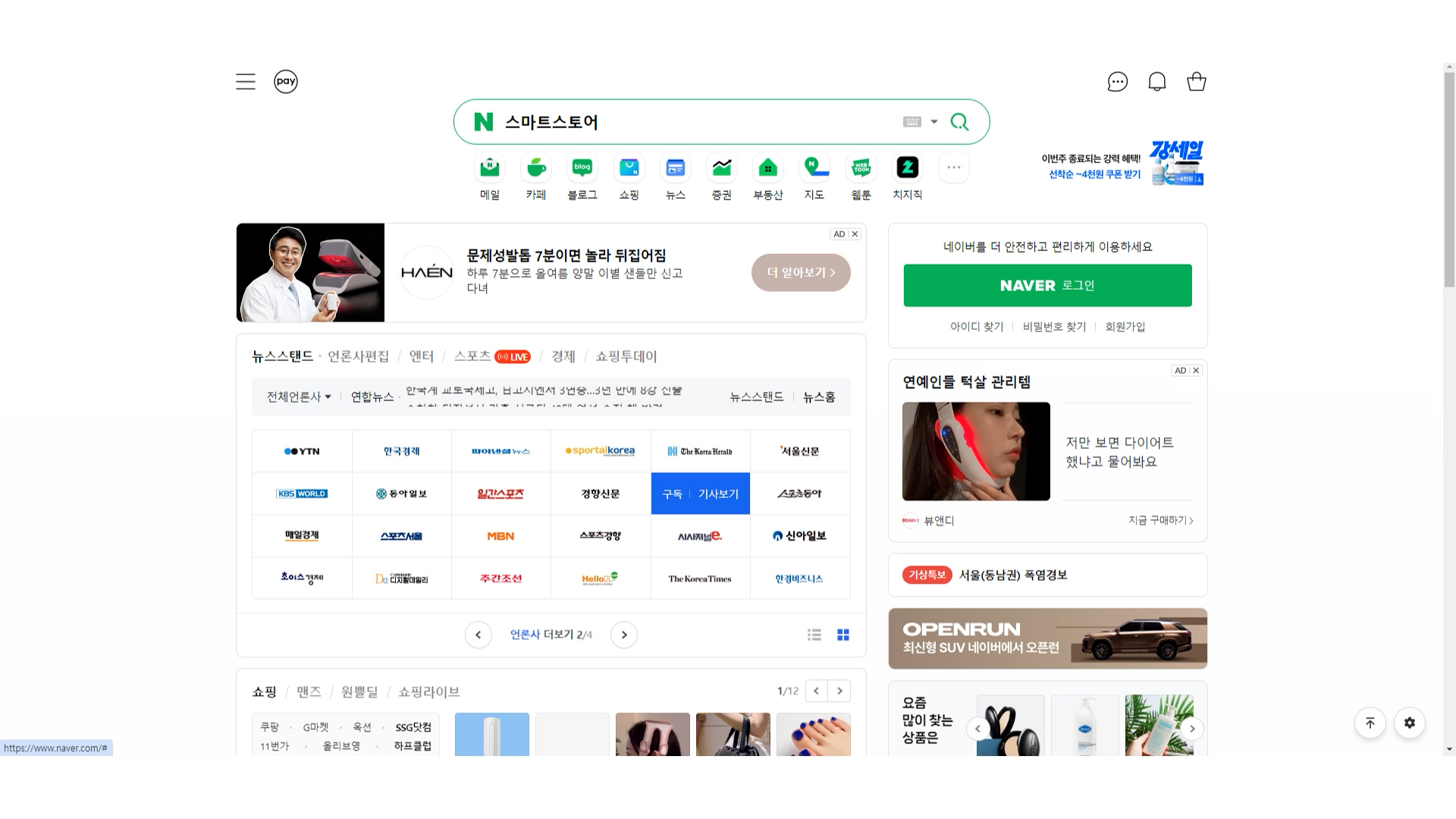 1. 네이버 검색창에 스마트스토어를 입력하고