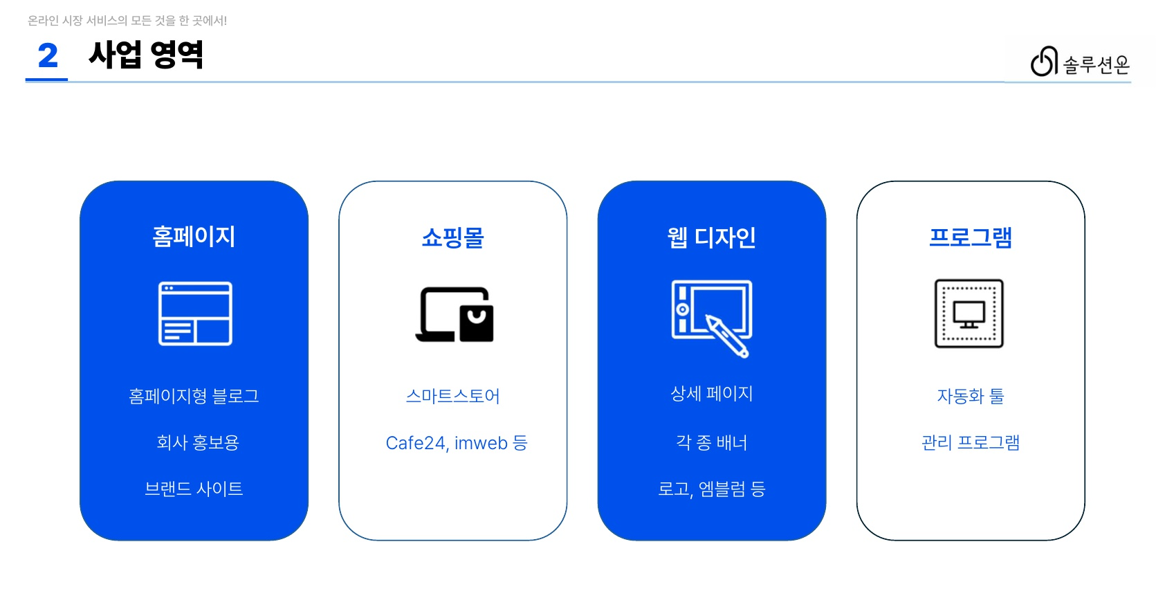 온라인 솔루션을 책임집니다 홈페이지, 쇼핑몰, 디자인, 자동화툴