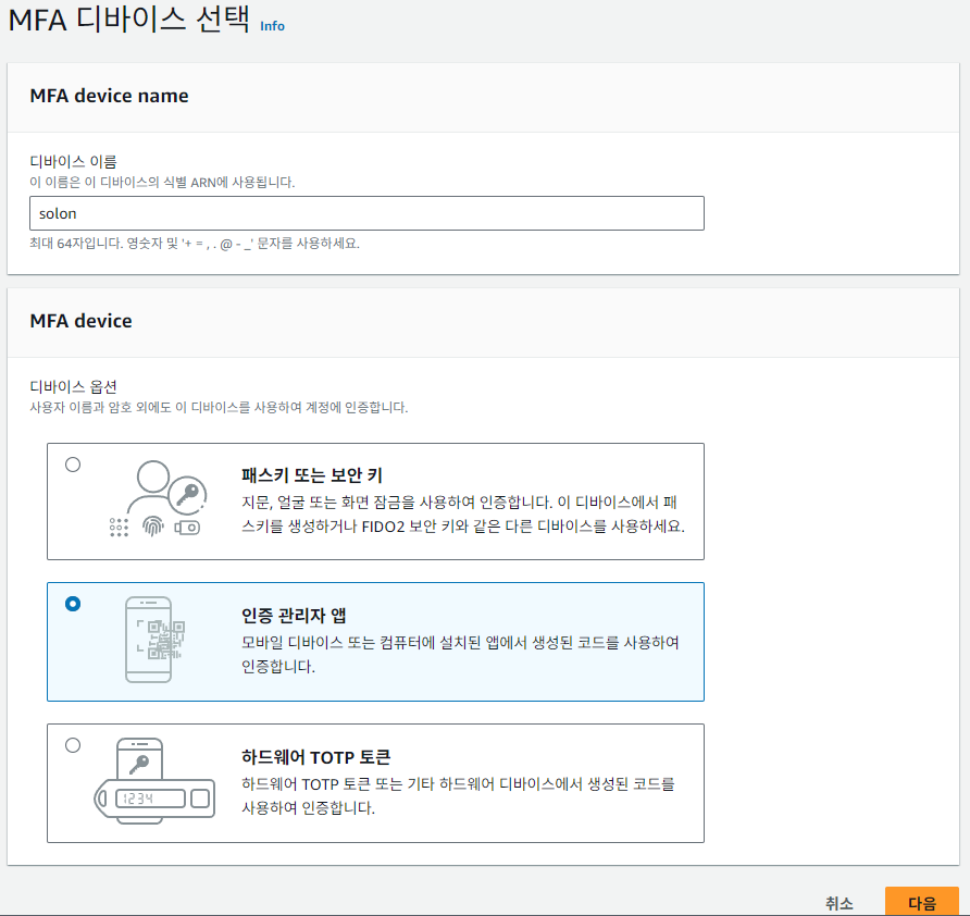 그리고 인증 관리자 앱(auth app)을 선택한다.